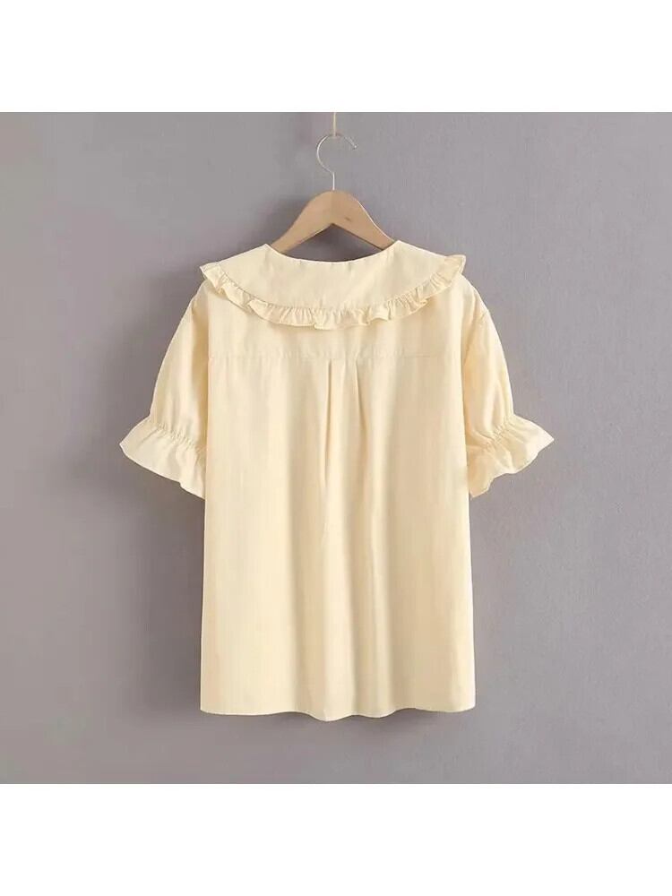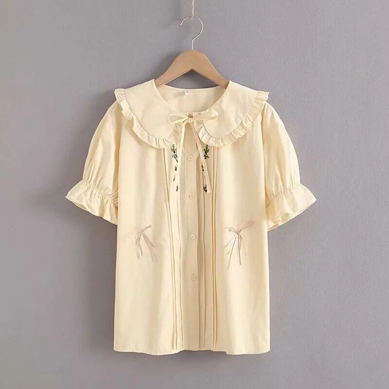 送料無料 アパレル 花刺繍女性サマーシャツ 2021 花びらスリーブピーターパン襟元気なスタイルかわいいトップス 大人ガーリー スウィート キュート カジュアル 夏物 花柄 AE12120080842298321105 | mihatudai(みはつばい)ネットショッピングならmihatudai