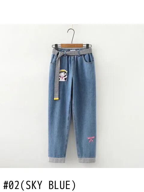 送料無料 アパレル ブルー漫画刺繍洗浄女性ジーンズサッシュ 2021 秋足首丈ストレートデニムパンツ オータム 秋物 AE12120080816314547825 | mihatudai(みはつばい)ネットショッピングならmihatudai
