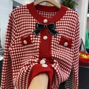 送料無料 アパレル Jmprs 千鳥格子丈カーディガン女性秋 2022 ヴィンテージパールボタンニットカーディガンシックなボウ O ネックセーター リボン Oネック 真珠 ビンテージ AE122232227940167872 | mihatudai(みはつばい)ネットショッピングならmihatudai