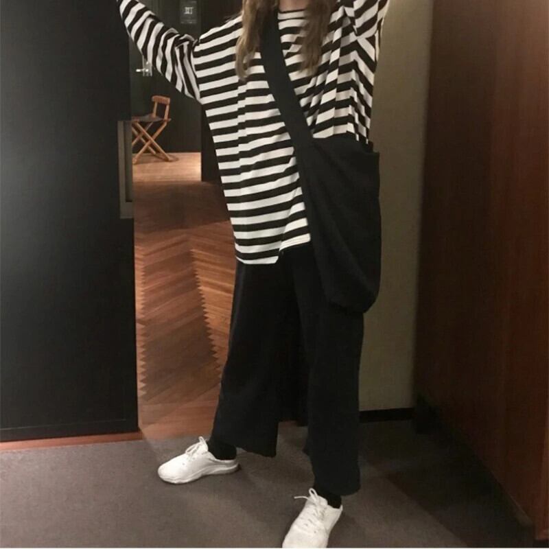 送料無料 アパレル 春秋原宿 O ネックストライプ Tシャツ女性すべて一致長袖 Tシャツオーバーサイズ Tシャツ黒トップス ロング ブラック かわいい スプリング 春物 Oネック AE122232240111766653 | mihatudai(みはつばい)ネットショッピングならmihatudai