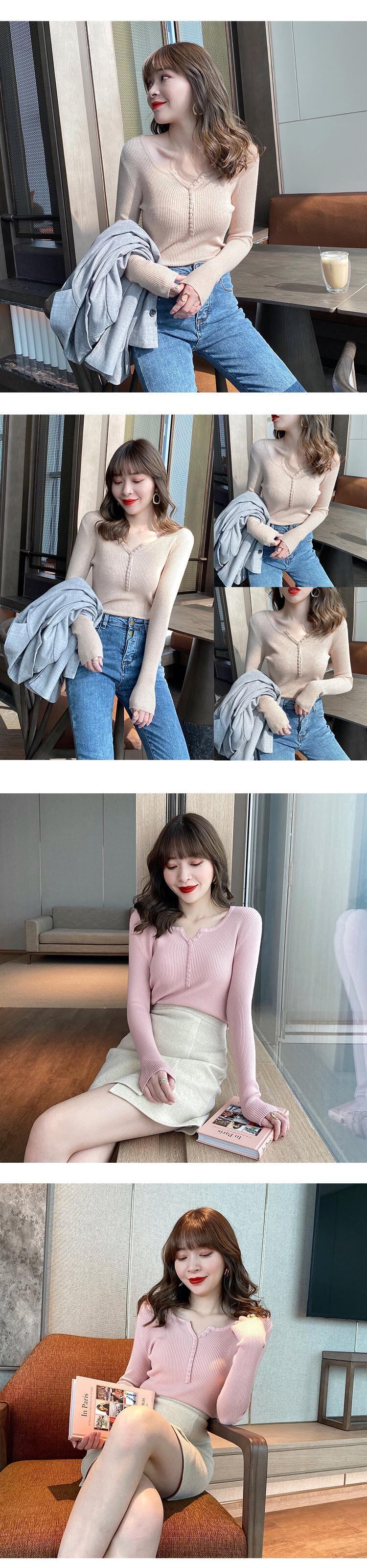 送料無料 アパレル 秋長袖 V ネックセーター女性スリムフィットボタンプルオーバーベーシックニットジャンパートップス 2021 ロング オータム 秋物 Vネック AE122232278044068684 | mihatudai(みはつばい)ネットショッピングならmihatudai