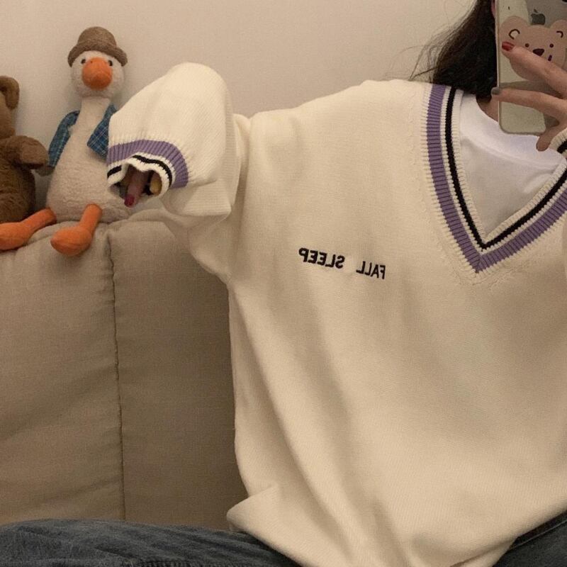 送料無料 アパレル 秋冬プレッピースタイルセーター女性ヴィンテージ V ネック毎日ニットジャンパー特大ガールズプルオーバー学生黒トップス ブラック ウィンター 冬物 Vネック ビンテージ AE122232256486608627 | mihatudai(みはつばい)ネットショッピングならmihatudai