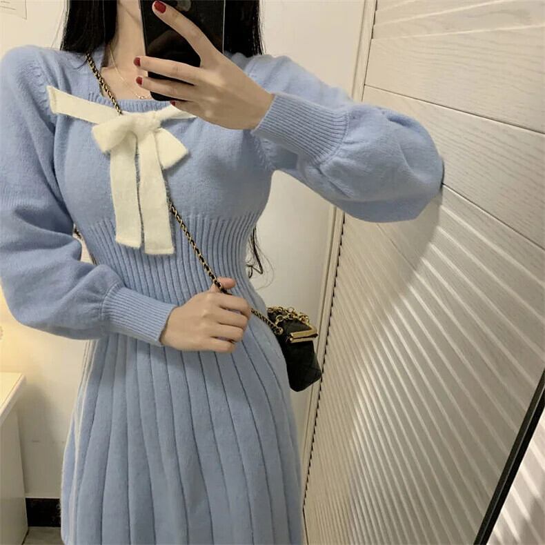 送料無料 アパレル JMPRS 弓ニットドレス女性秋冬プレッピースタイルスリムフィットブルードレスガール甘いプリーツ Vestidos リボン 大人ガーリー スウィート キュート カジュアル ウィンター 冬物 AE122232224869314337 | mihatudai(みはつばい)ネットショッピングならmihatudai