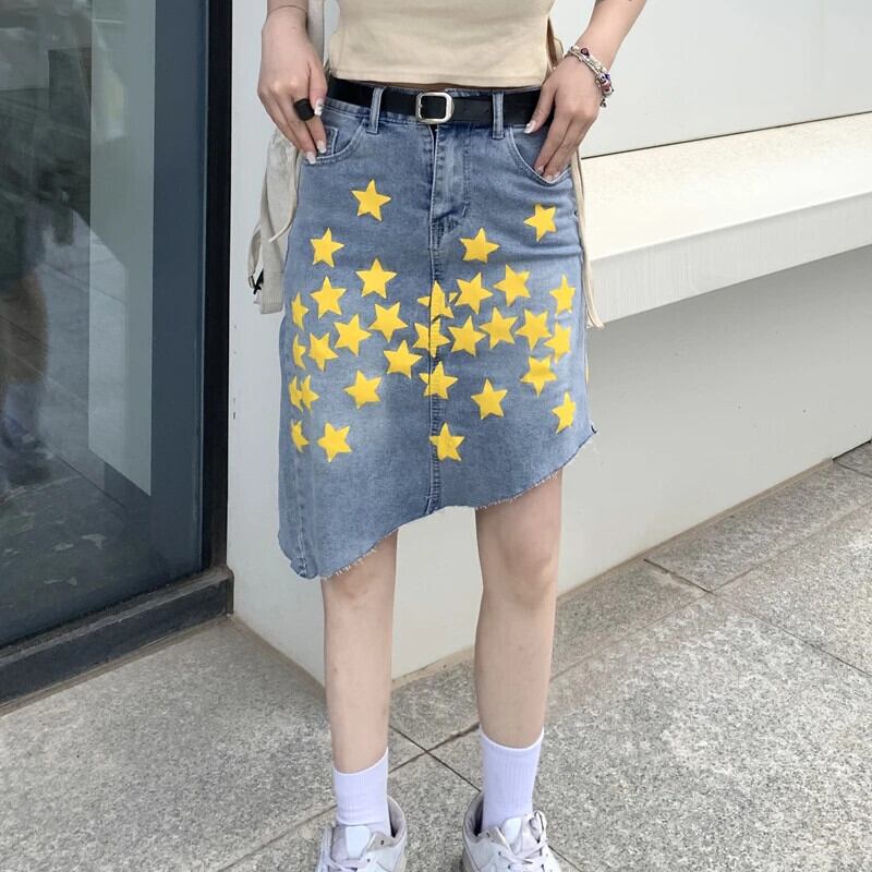 送料無料 アパレル JMPRS 2023 春デニムスタープリントデミンスカート女性不規則な A ラインジーンズスカート Y2k ウエスト段段 Faldas スプリング 春物 Aライン AE122232272397403050 | mihatudai(みはつばい)ネットショッピングならmihatudai