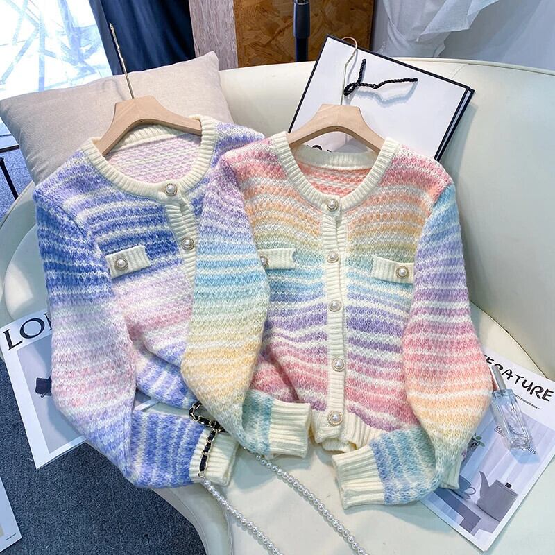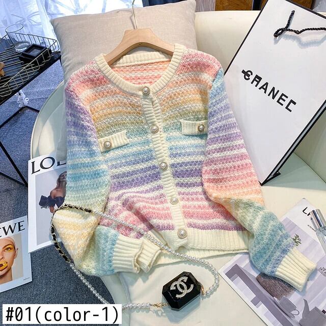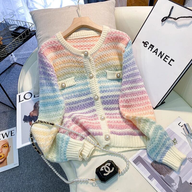 送料無料 アパレル JMPRS 甘いレインボーストライプニットクロップドカーディガン女性シングルブレーテッドコート Y2k 長袖トップス ロング 大人ガーリー スウィート キュート カジュアル AE122232269725764165 | mihatudai(みはつばい)ネットショッピングならmihatudai