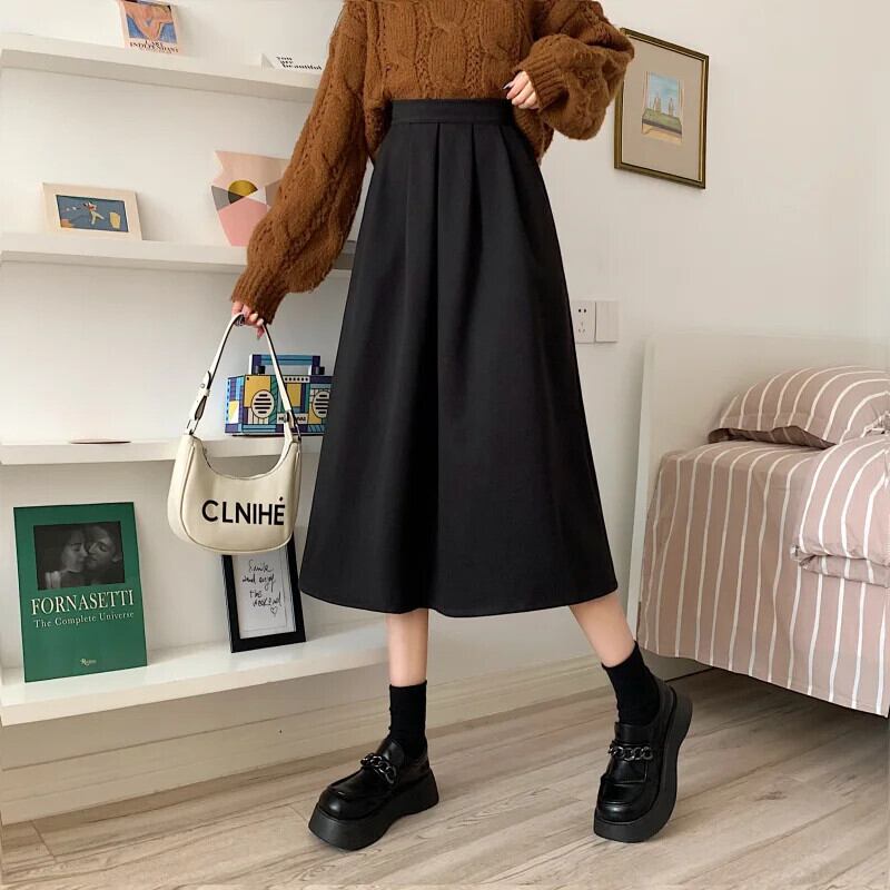 送料無料 アパレル 弾性ウエストプリーツスカート女性スタイルミディスカート秋厚い A ライン黒スカート ブラック エラスティック 伸縮 オータム 秋物 Aライン AE122232289900338384 | mihatudai(みはつばい)ネットショッピングならmihatudai