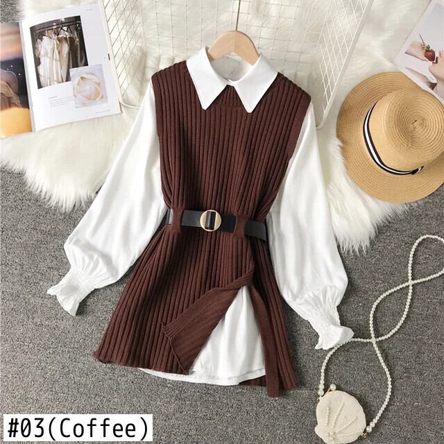 送料無料 アパレル 2021 春秋の女性のランタンスリーブシャツニットベスト 2 点セットのスタイルウエストバンドベスト 2 セットトップ スプリング 春物 オータム 秋物 2セット AE122232268044687545 | mihatudai(みはつばい)ネットショッピングならmihatudai
