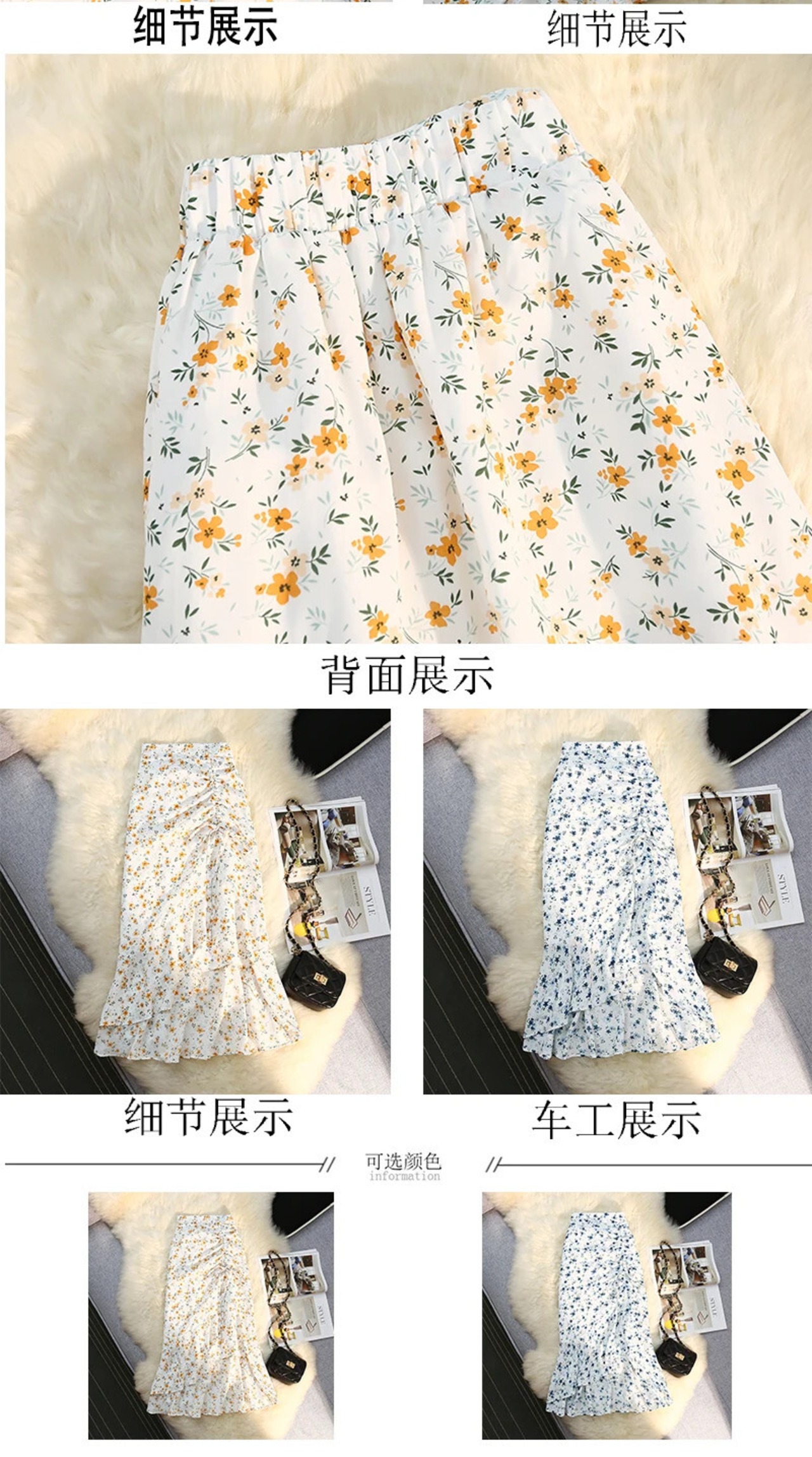 送料無料 アパレル JMPRS 花柄シフォンスカート女性不規則なトランペットスカート夏甘いシャーリング Faldas 大人ガーリー スウィート キュート カジュアル サマー 夏物 AE12223222827864855 | mihatudai(みはつばい)ネットショッピングならmihatudai