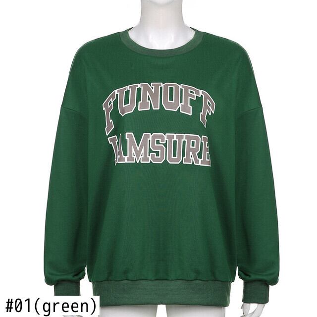 送料無料 アパレル 秋のレタープリント特大トレーナー女性ルーズ長袖グリーンプルオーバー 90 年代ストリート ロング オータム 秋物 AE122232254068034271 | mihatudai(みはつばい)ネットショッピングならmihatudai