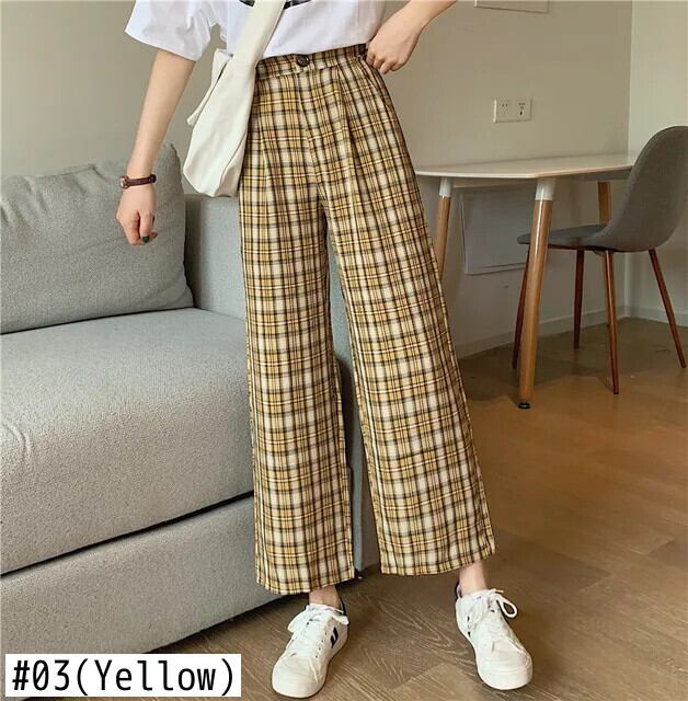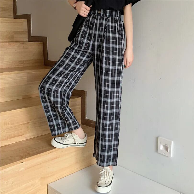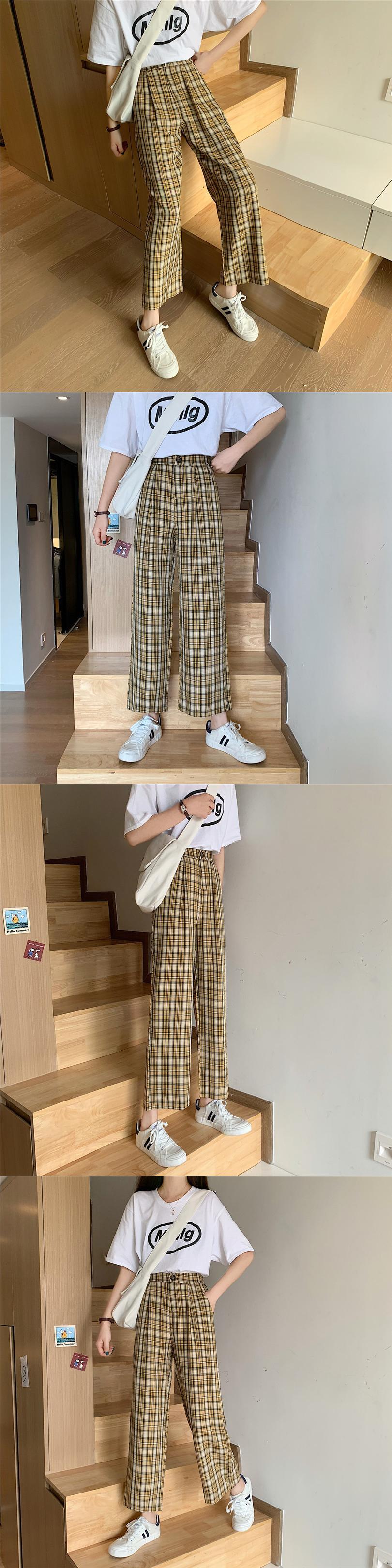 送料無料 アパレル 弾性ウエストチェック柄パンツ女性ルーズワイド脚ズボン女性レトロ原宿オールマッチワークボトムスストリートティーン エラスティック 伸縮 かわいい ワイドレッグ ワイドパンツ AE122232247074164705 | mihatudai(みはつばい)ネットショッピングならmihatudai