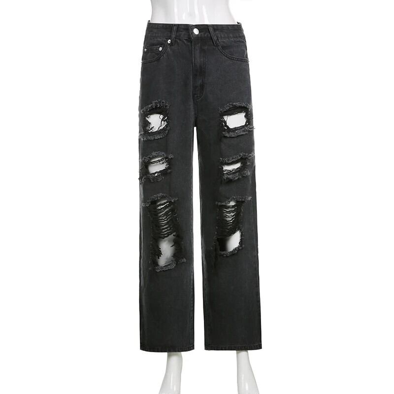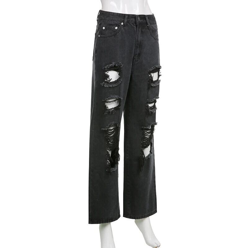送料無料 アパレル 穴黒ジーンズ女性原宿ウエストストレートデニムパンツ秋 2022 セクシーなホットストリートパンツ ブラック かわいい AE122232277122619580 | mihatudai(みはつばい)ネットショッピングならmihatudai