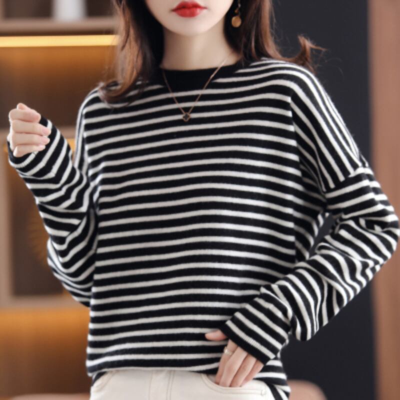 送料無料 アパレル JMPRS 黒と白のストライプのカシミヤセーター女性秋ラウンドネックショルダージャンパーソフトニットプルオーバー ホワイト ブラック Oネック AE122232294789476826 | mihatudai(みはつばい)ネットショッピングならmihatudai