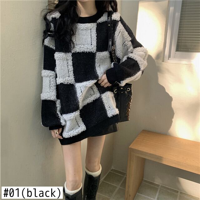 送料無料 アパレル JMPRS コントラストカラーチェック柄セーター女性厚い特大ジャンパー怠惰なスタイルニットプルオーバートップス AE122232286196555130 | mihatudai(みはつばい)ネットショッピングならmihatudai