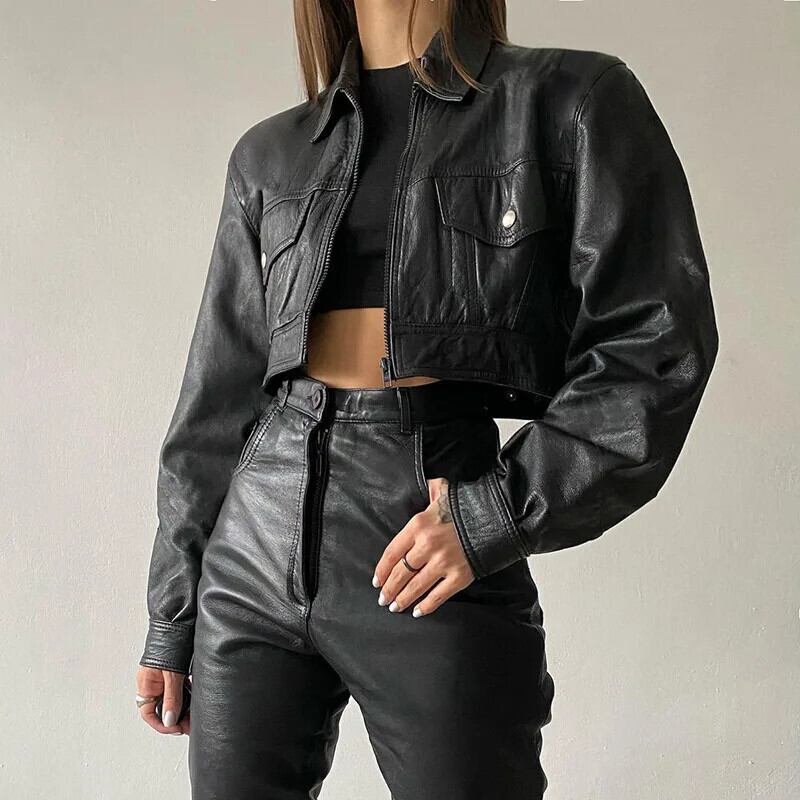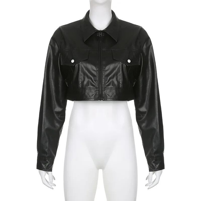 送料無料 アパレル JMPRS クールターンダウンブラック Pu レザークロップドジャケット女性ジッパールーズコート長袖ジャケットストリート ロング AE122232235641833312 | mihatudai(みはつばい)ネットショッピングならmihatudai
