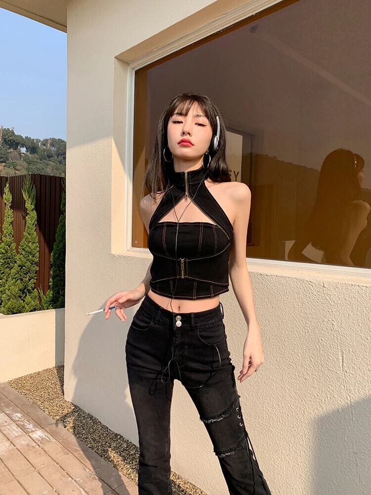 送料無料 アパレル 2022 夏インセクシーなクロップトップス女性ヨーロッパとアメリカのオフショルダーホルターネック中空ベストスリムフィットジッパートップ サマー 夏物 ヨーロピアン AE122232280920881929 | mihatudai(みはつばい)ネットショッピングならmihatudai