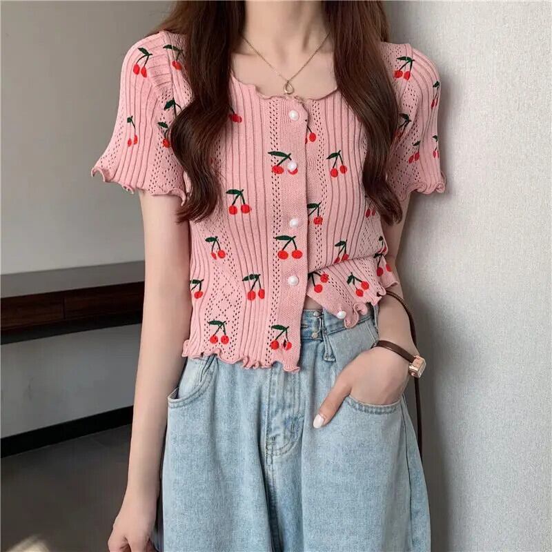 送料無料 アパレル スイートチェリー半袖ニットカーディガン女性の春 2023 スタイルニッチスリムフィット Tシャツ Y2k ピンククロップトップス ショート ハーフスリーブ 大人ガーリー スウィート キュート カジュアル スプリング 春物 AE122232287401317357 | mihatudai(みはつばい)ネットショッピングならmihatudai