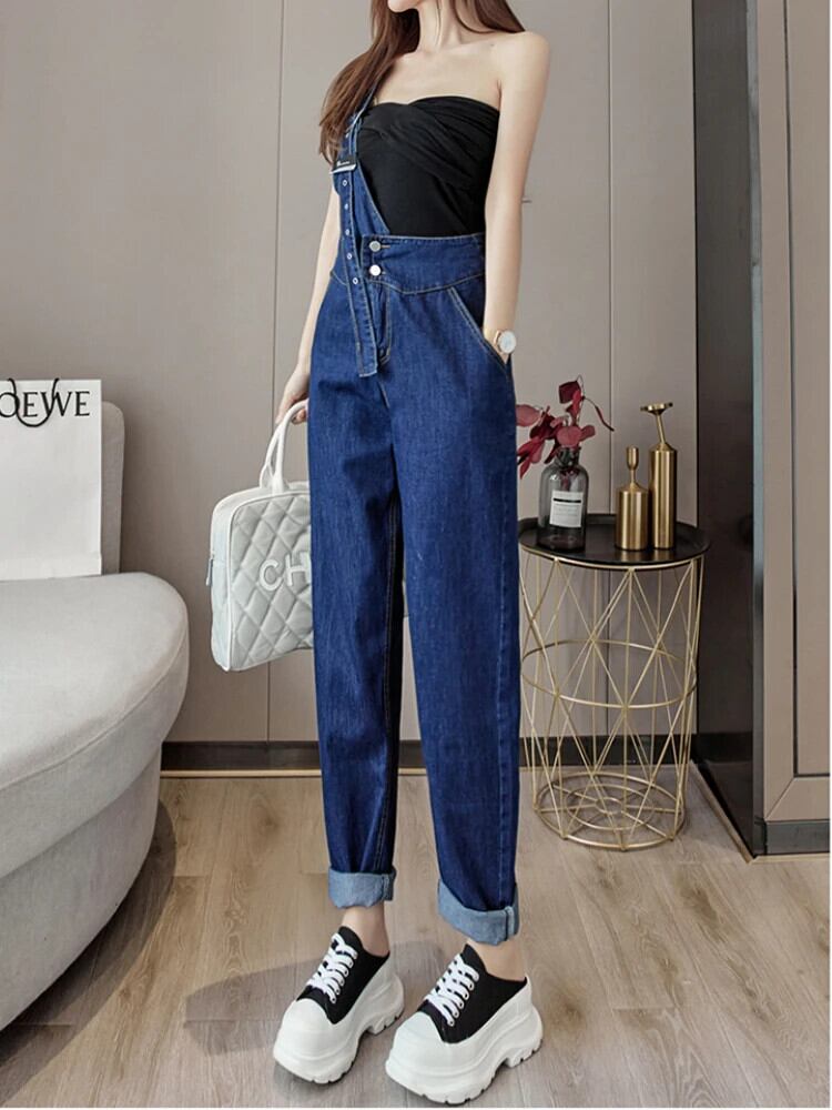 送料無料 アパレル シングルショルダーストラップジーンズジャンプスーツ女性ポケットブルーロンパースニッチデミンストリート全体的な服 Y2k AE12223225857935427 | mihatudai(みはつばい)ネットショッピングならmihatudai