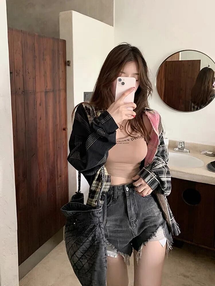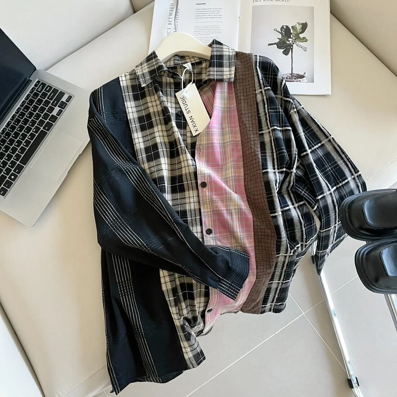 送料無料 アパレル JMPRS レトロパッチワークカラーチェック柄シャツ女性センスストリートルーズ長袖日焼け止めブラウスストリートトップス ロング AE12223227885024871 | mihatudai(みはつばい)ネットショッピングならmihatudai