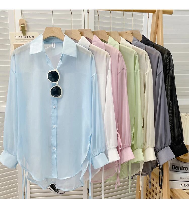 送料無料 アパレル アイスシルク日焼け止めシャツ女性レースアップシングルブレストブラウス夏固体ホリデートップス サマー 夏物 ソリッドカラー AE122232282699676582 | mihatudai(みはつばい)ネットショッピングならmihatudai