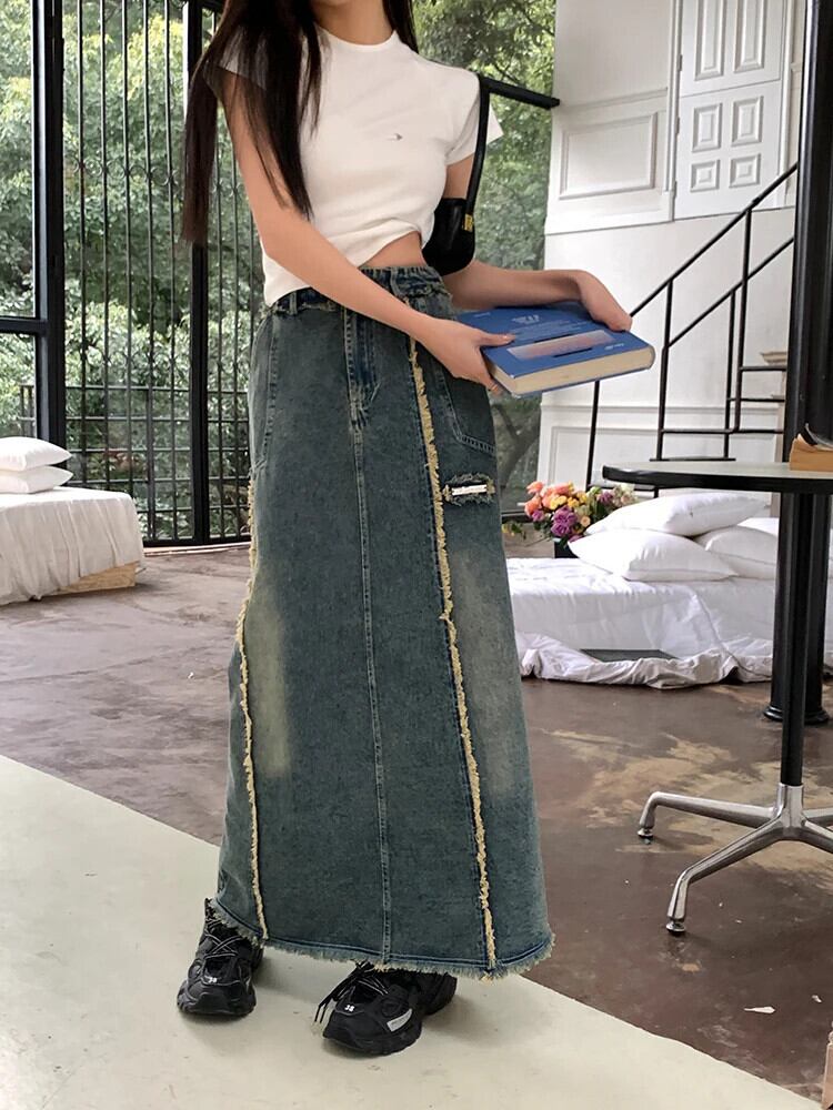 送料無料 アパレル ヴィンテージデニムロングスカートの女性 2023 春スタイルエッジスプリットジーンズスカート原宿スリムフィット弾性ウエスト段段段 エラスティック 伸縮 かわいい スプリング 春物 ビンテージ AE122232263672356673 | mihatudai(みはつばい)ネットショッピングならmihatudai
