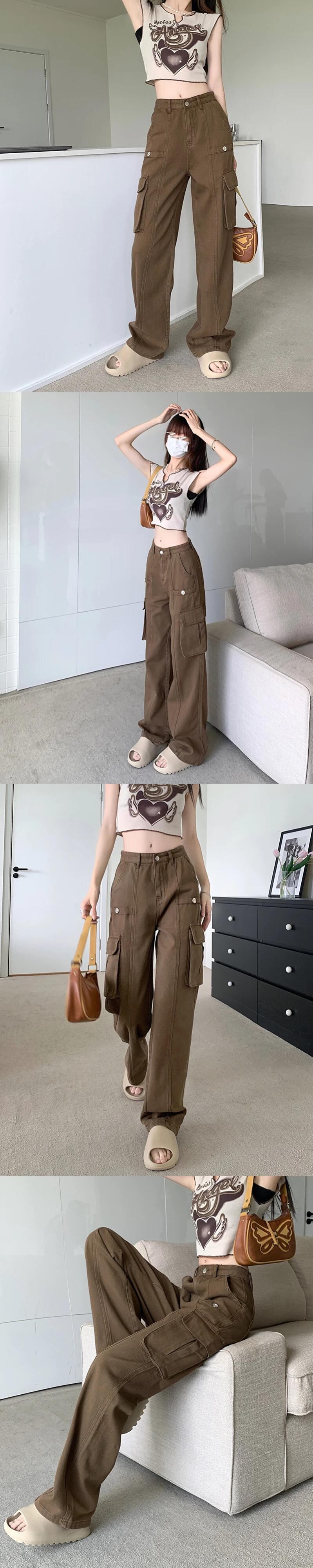 送料無料 アパレル アメリカンレトロ女性のウエストカーゴパンツファッションレッグワイドジーンズズボンY2kポケットブラウンジーンズストリート AE122232257838023026 | mihatudai(みはつばい)ネットショッピングならmihatudai