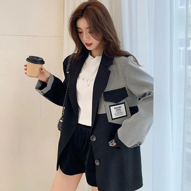 送料無料 アパレル チェック柄コントラストカラースーツジャケット女性秋春 2023 シングルブレストブレザーポケット生き抜くコート スプリング 春物 AE122232217085054351 | mihatudai(みはつばい)ネットショッピングならmihatudai