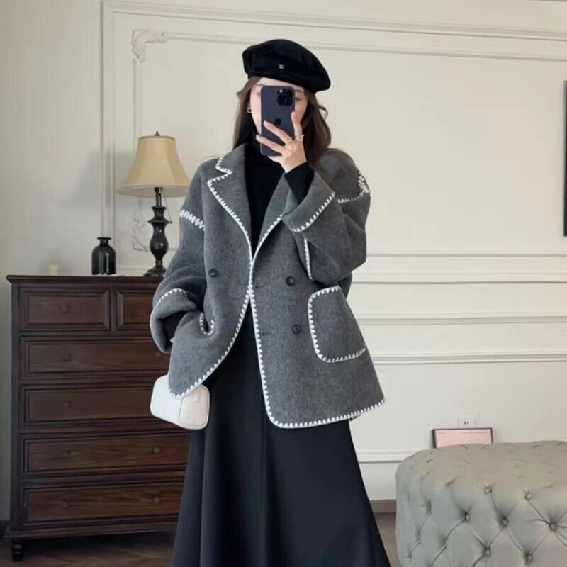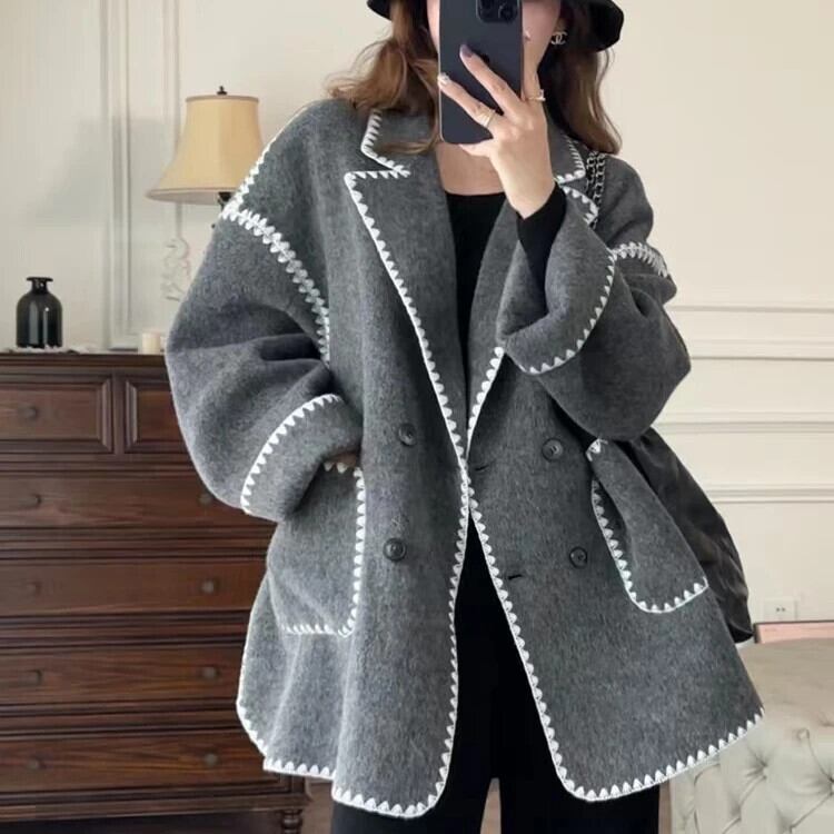 送料無料 アパレル 女性のコート手仕事刺繍ルーズウールジャケット秋冬長袖ポケットグレー生き抜く服 ロング レッド ウィンター 冬物 AE122232272795437897 | mihatudai(みはつばい)ネットショッピングならmihatudai