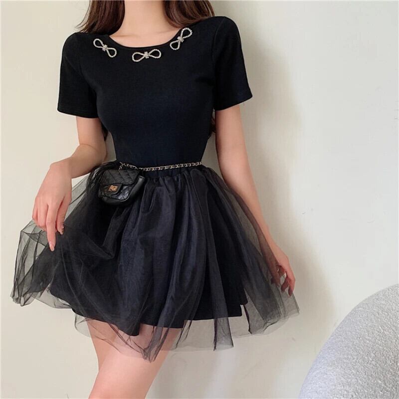送料無料 アパレル メッシュパッチワークブラックドレス女性甘い弓半袖ドレス夏 2023 イブニング Vestidos Y2k リボン 大人ガーリー スウィート キュート カジュアル サマー 夏物 AE12223226601148922 | mihatudai(みはつばい)ネットショッピングならmihatudai