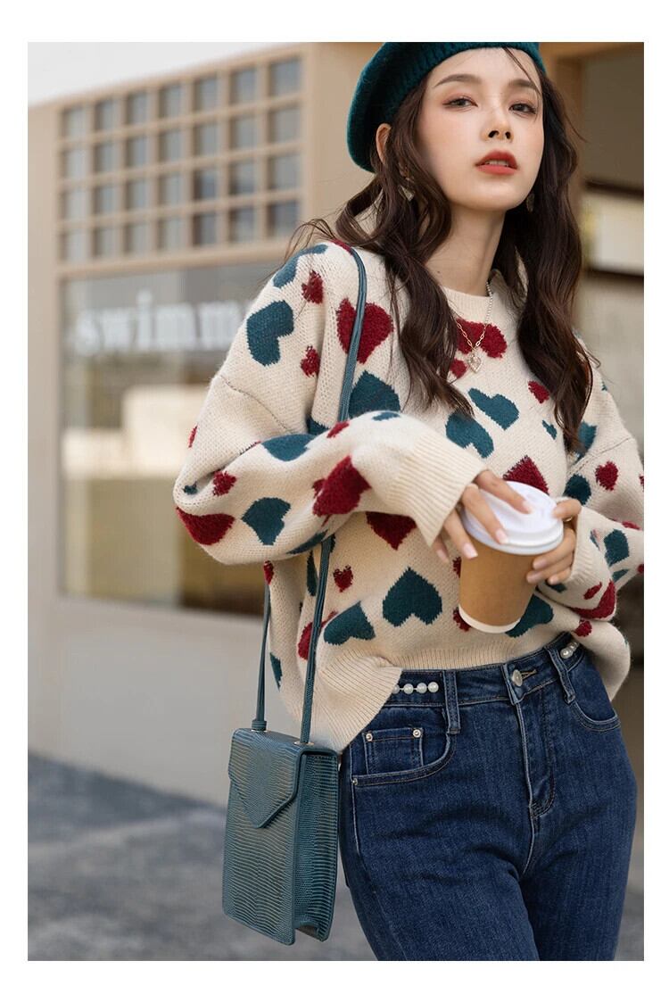 送料無料 アパレル JMPRS ラブプリントカシミヤセーター女性 O ネックニットプルオーバー秋ヴィンテージ長袖ジャンパートップス ロング Oネック ビンテージ AE122232282910257572 | mihatudai(みはつばい)ネットショッピングならmihatudai