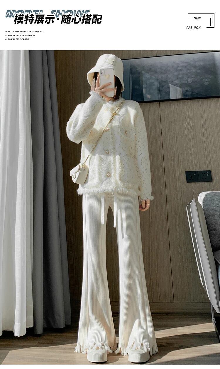 送料無料 アパレル 厚いニットワイドレッグパンツ女性テルウエストロングパンツスタイル巾着スリムフィットパンツ AE122232281287012225 | mihatudai(みはつばい)ネットショッピングならmihatudai