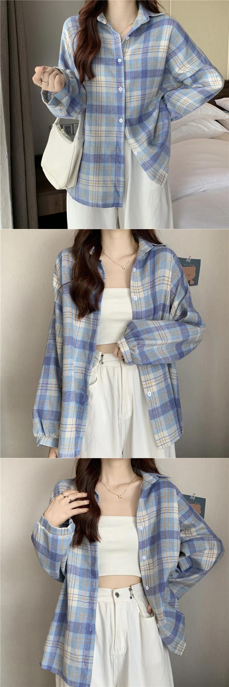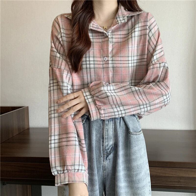 送料無料 アパレル 秋ヴィンテージチェック柄特大ブラウス女性ランタンスリーブコットンシャツ学生ボタンアップトップス 2021 オータム 秋物 ビンテージ AE122232231910329458 | mihatudai(みはつばい)ネットショッピングならmihatudai