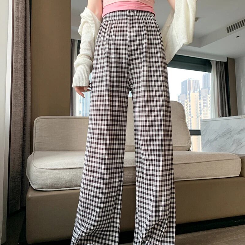 送料無料 アパレル プリーツチェック柄ワイドレッグパンツ女性の夏 2023 ウエストストレートズボン Y2k だぶだぶストリート サマー 夏物 AE122232246323451149 | mihatudai(みはつばい)ネットショッピングならmihatudai
