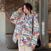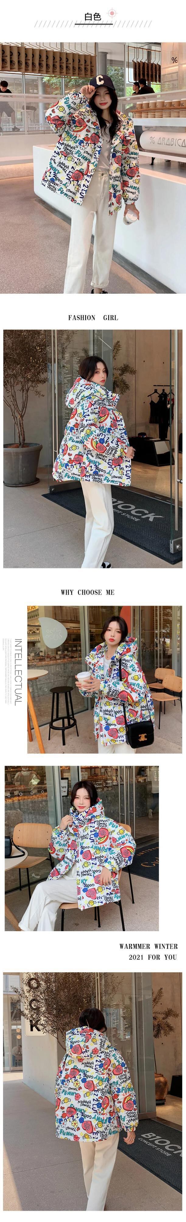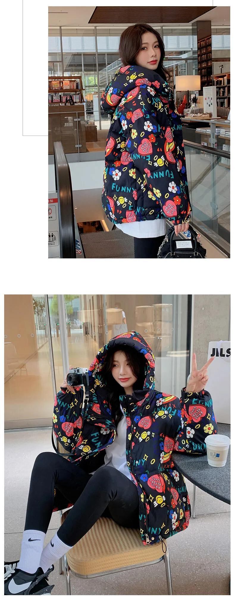 送料無料 アパレル 2021 冬オーバーサイズ漫画プリントパッド入りコート女性ショートフード付きパーカー暖かいダウンジャケット原宿 かわいい ウィンター 冬物 AE122232263140694550 | mihatudai(みはつばい)ネットショッピングならmihatudai