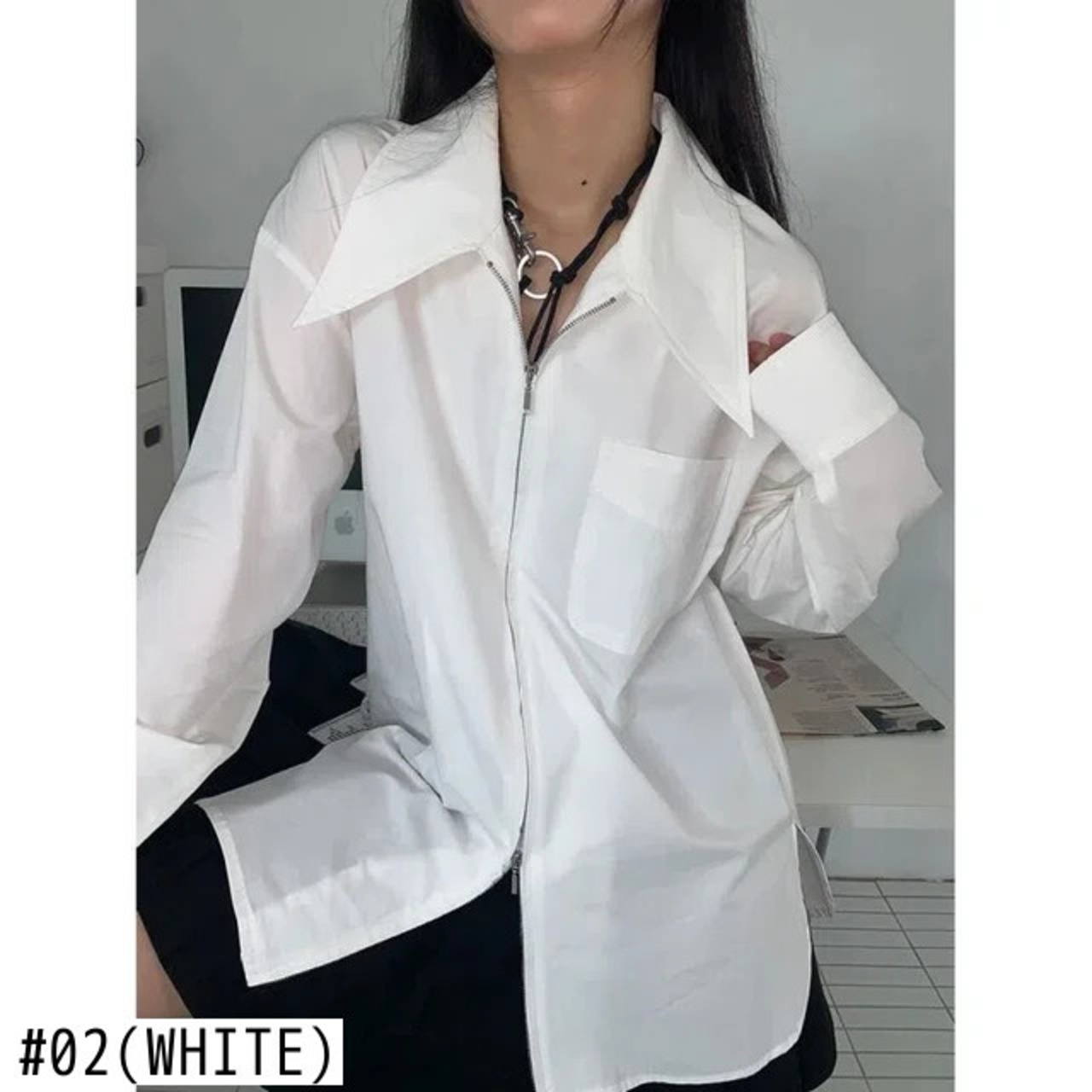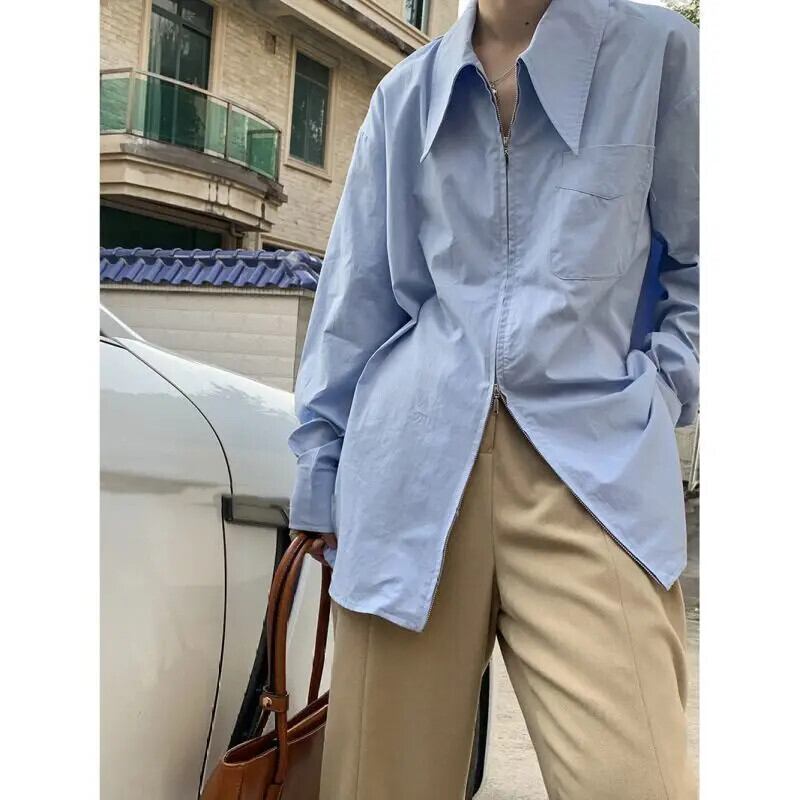 送料無料 アパレル JMPRS ホワイトジッパーシャツ女性 Ins ソリッドカラー長袖ブラウスシックなスタイル ロング AE122232242964896419 | mihatudai(みはつばい)ネットショッピングならmihatudai