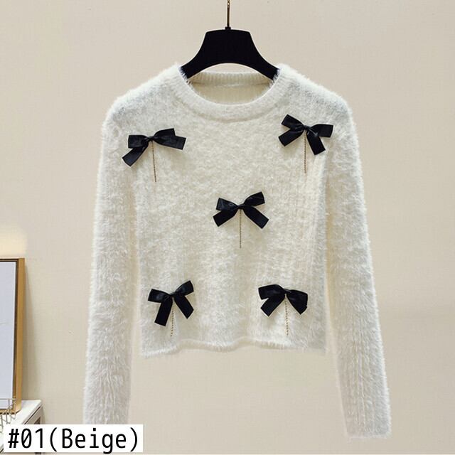 送料無料 アパレル JMPRS 秋甘い弓ニットジャンパー女性長袖ピンクのセーター白 Y2k ユニークなプルオーバートップス ロング ホワイト リボン 大人ガーリー スウィート キュート カジュアル AE122232242906734924 | mihatudai(みはつばい)ネットショッピングならmihatudai