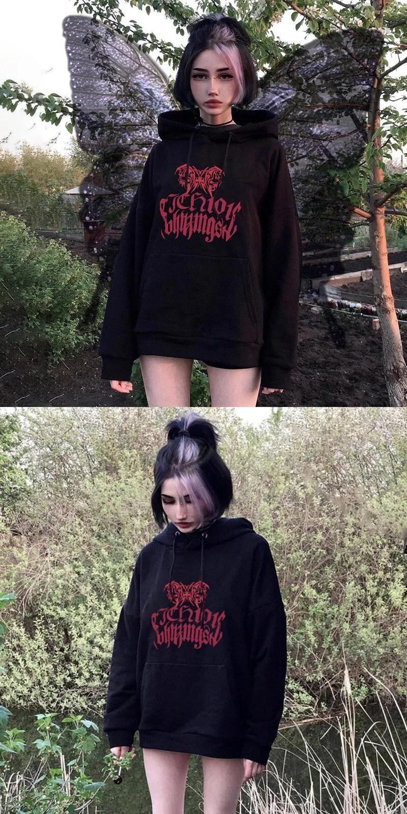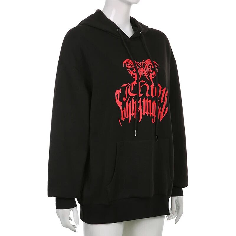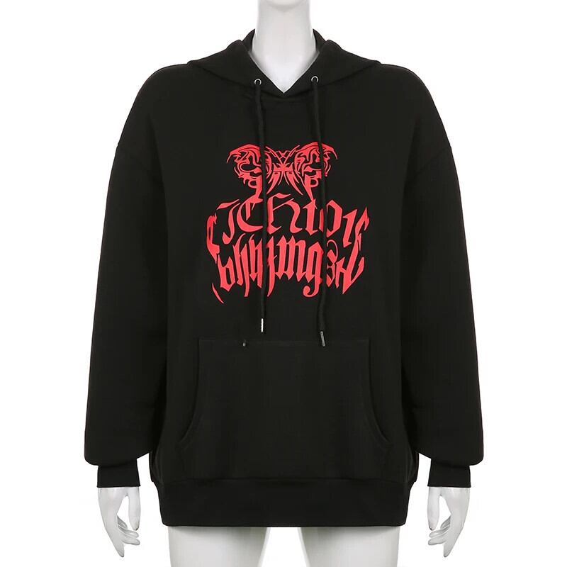 送料無料 アパレル レター印刷特大グランジパーカー女性 2021 秋黒パンクスウェット長袖プルオーバートップスゴシック ロング ブラック シャツ オータム 秋物 AE122232254860491086 | mihatudai(みはつばい)ネットショッピングならmihatudai