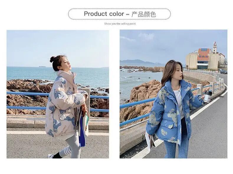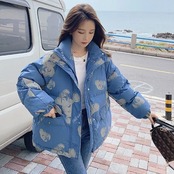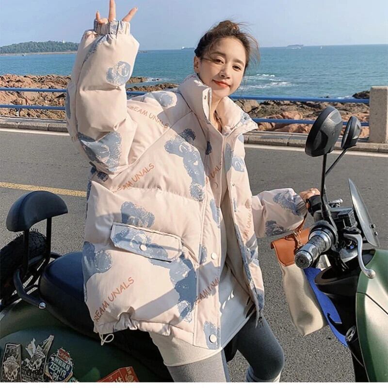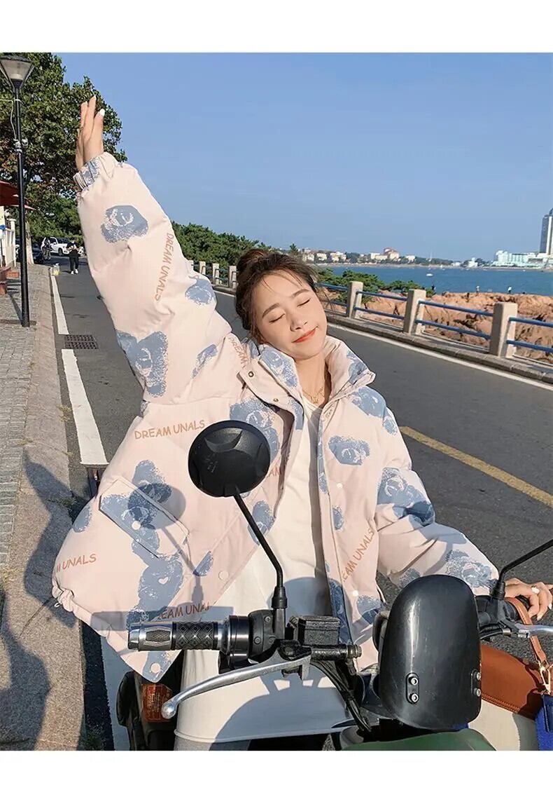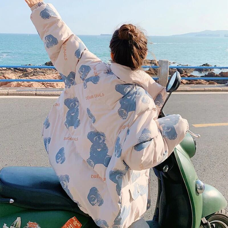 送料無料 アパレル クマプリントスタンドカラージャケット学生緩い暖かいコート女性 Y2k 厚い綿パッド入り生き抜く服 コットン AE122232298945867949 | mihatudai(みはつばい)ネットショッピングならmihatudai