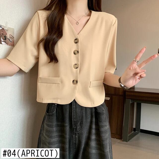 送料無料 アパレル シックな V ネック半袖クロップドブレザー女性シングルブレストトップスジャケット固体ストリートコート ショート ハーフスリーブ Vネック ソリッドカラー AE122232268151292182 | mihatudai(みはつばい)ネットショッピングならmihatudai