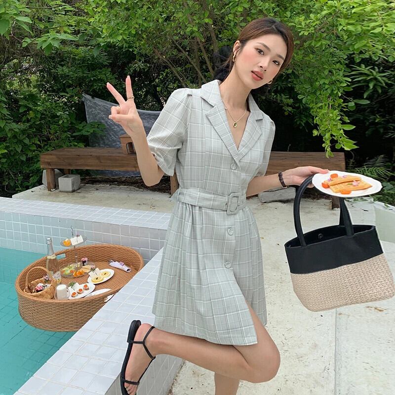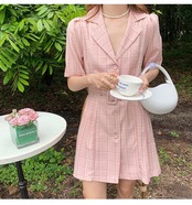 送料無料 アパレル スタイルピンクの女性のスーツドレスレトロチェック柄シングルブレストドレス夏ノッチプリーツ Vestido 2023 サマー 夏物 AE122232236999828409 | mihatudai(みはつばい)ネットショッピングならmihatudai