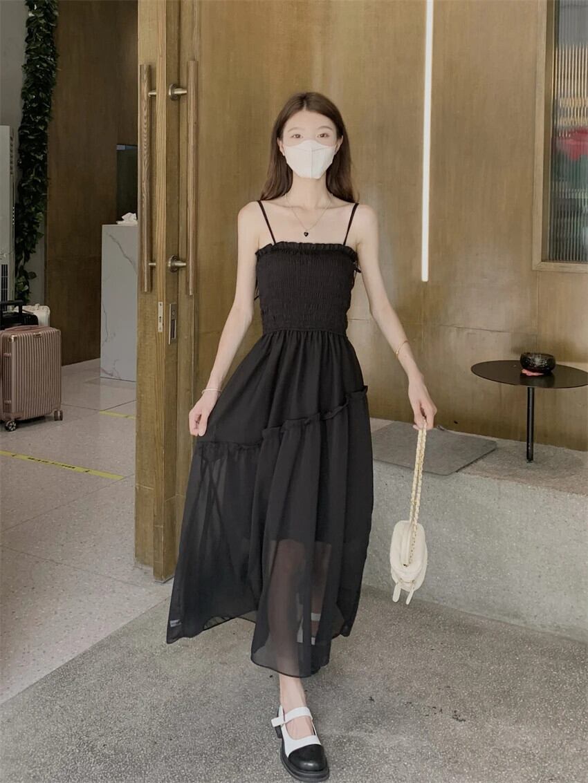 送料無料 アパレル Fairycore スパゲッティストラップドレス女性夏シフォンホリデーマキシドレス黒 Vestidos Y2k ブラック サマー 夏物 AE122232237748792112 | mihatudai(みはつばい)ネットショッピングならmihatudai