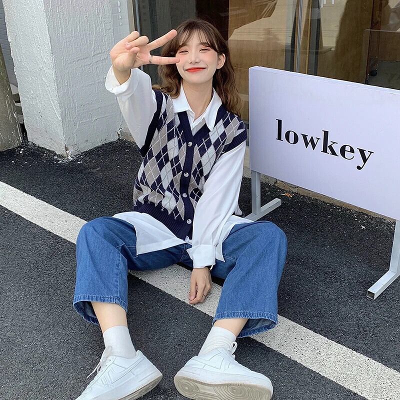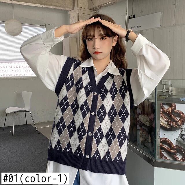 送料無料 アパレル V ネックヴィンテージアーガイルクロップドセーターベスト女性ノースリーブカーディガンプレッピースタイルボタンアップタンクトップ ビンテージ AE122232213673012791