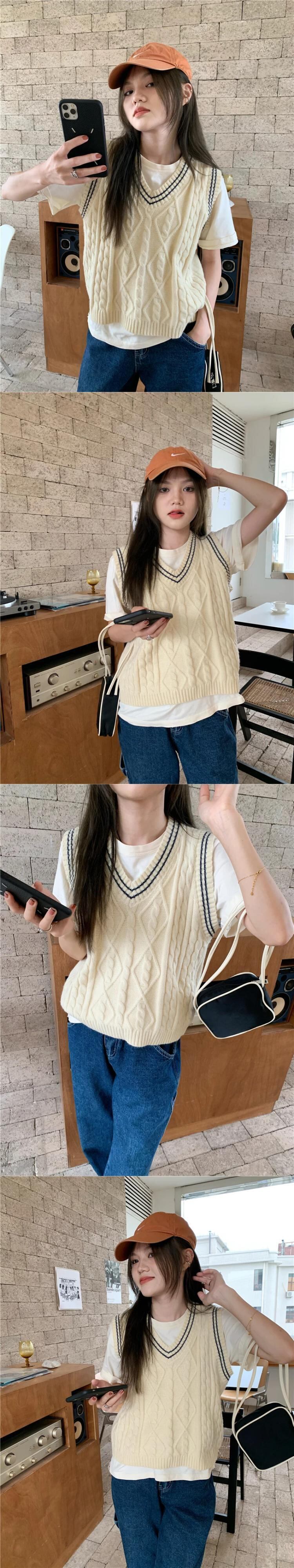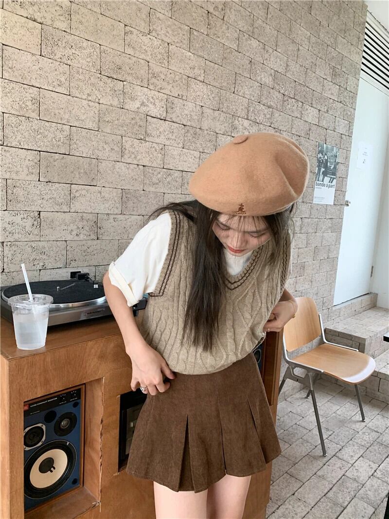 送料無料 アパレル プレッピースタイルクロップセーターベスト女性 2021 秋ノースリーブヴィンテージニットプルオーバー 90 s V ネックトップス Vネック ビンテージ AE122232218903888745