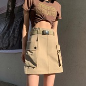 送料無料 アパレル ベルト付きサロペットスカート 2023年夏 ウエスト着痩せショートスカート Y2k Hライン ポケット ファルダス サマー 夏物 ハーネス AE122232217010007011 | mihatudai(みはつばい)ネットショッピングならmihatudai