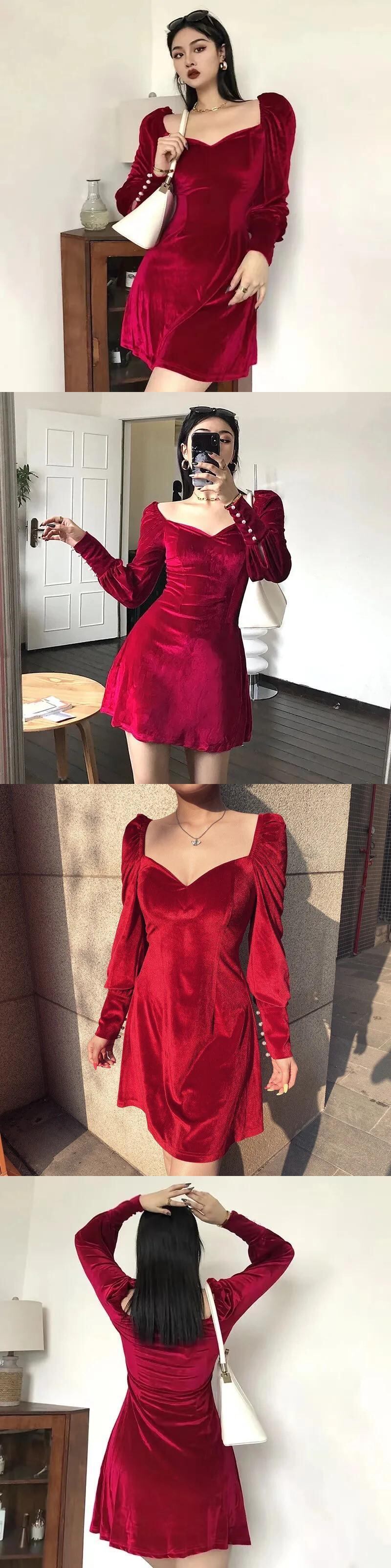 送料無料 アパレル 2021 ヴィンテージ Velevt フレンチドレスの女性長袖ミニパーティードレススリムパールボタン A ライン Vestidos ロング Aライン 真珠 ビンテージ AE122232280089166604 | mihatudai(みはつばい)ネットショッピングならmihatudai