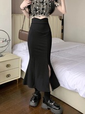 送料無料 アパレル 黒トランペットスカート夏 2023 ウエストスリムフィットミッドレングススカートオフィスジッパーロングスカート ブラック サマー 夏物 会社 学校 通勤や通学にも AE12223222236163638 | mihatudai(みはつばい)ネットショッピングならmihatudai