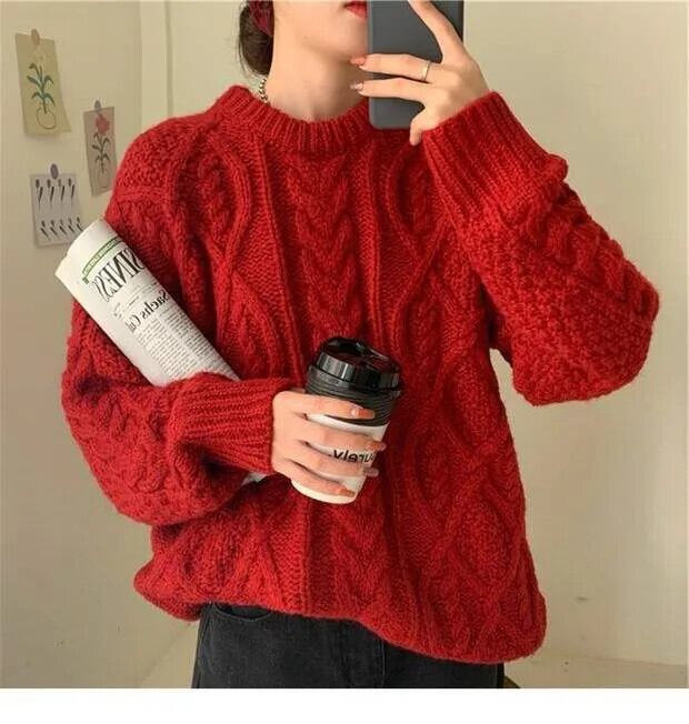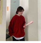 送料無料 アパレル クリスマスレッドツイストセーター女性レトロルーズ怠惰なスタイルニットジャンパー秋冬すべて一致 O ネックプルオーバー ウィンター 冬物 Oネック AE12223221714421536 | mihatudai(みはつばい)ネットショッピングならmihatudai
