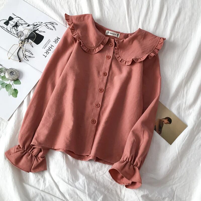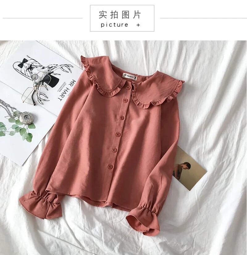 送料無料 アパレル 甘いピーターパンカラーシャツ女性長袖学生ブラウス春秋無地トップス Y2k ロング 大人ガーリー スウィート キュート カジュアル スプリング 春物 ソリッドカラー AE122232257356141427 | mihatudai(みはつばい)ネットショッピングならmihatudai