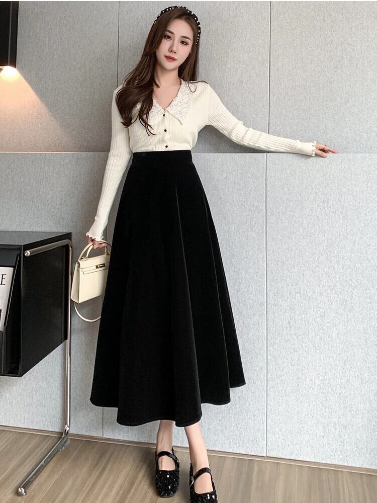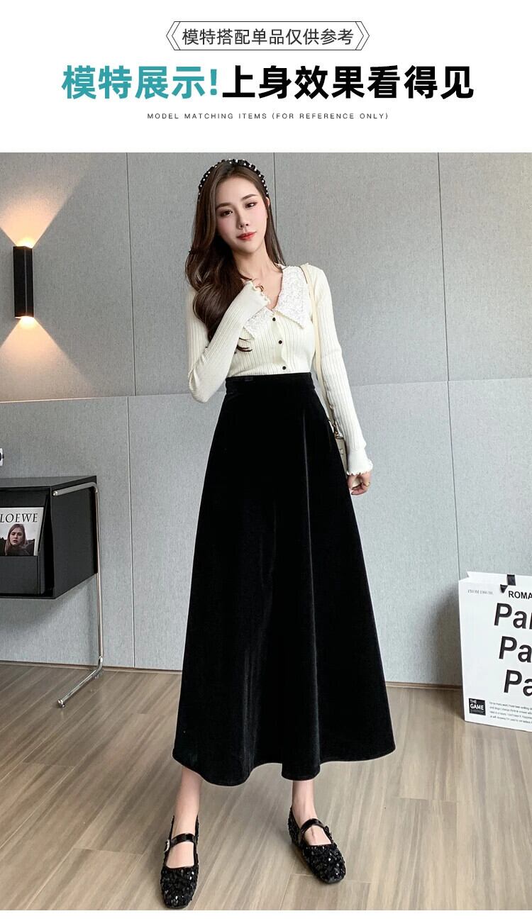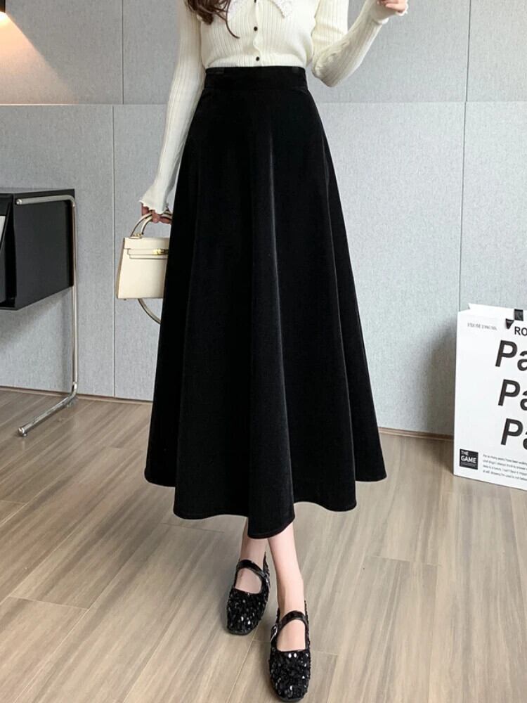 送料無料 アパレル JMPRS レトロウエストミッドレングススカート女性ベルベット大スイング傘スカート秋冬すべてマッチ Faldas ウィンター 冬物 AE122232283260204947 | mihatudai(みはつばい)ネットショッピングならmihatudai