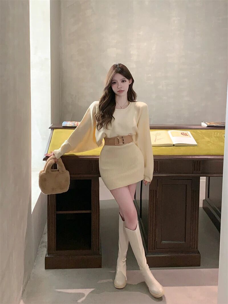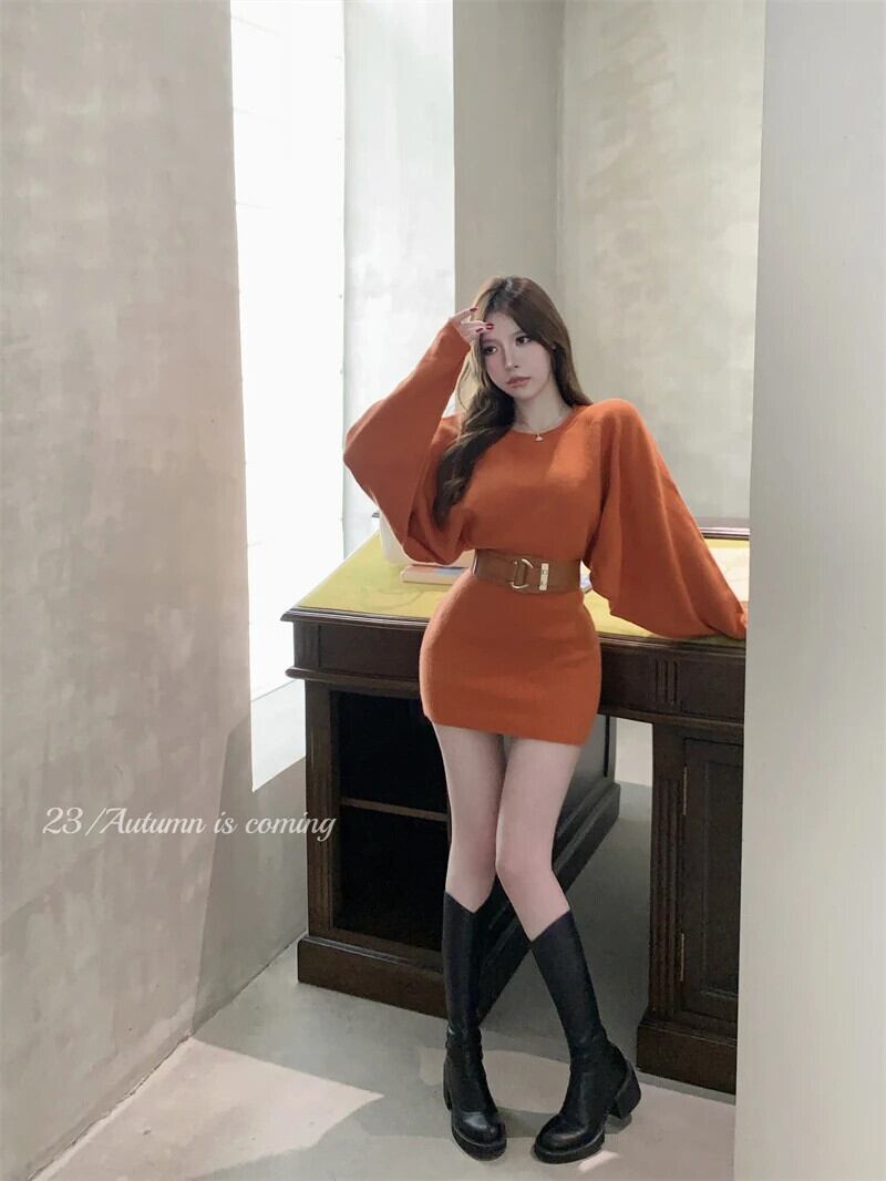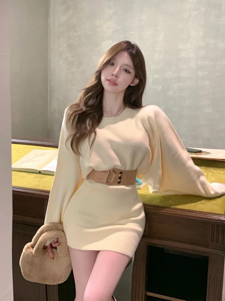 送料無料 アパレル セクシーなバットウィングスリーブニットドレスベルト付き O ネックドレス秋冬固体 Vestido 2023 ウィンター 冬物 ハーネス Oネック ソリッドカラー AE122232233388584876 | mihatudai(みはつばい)ネットショッピングならmihatudai