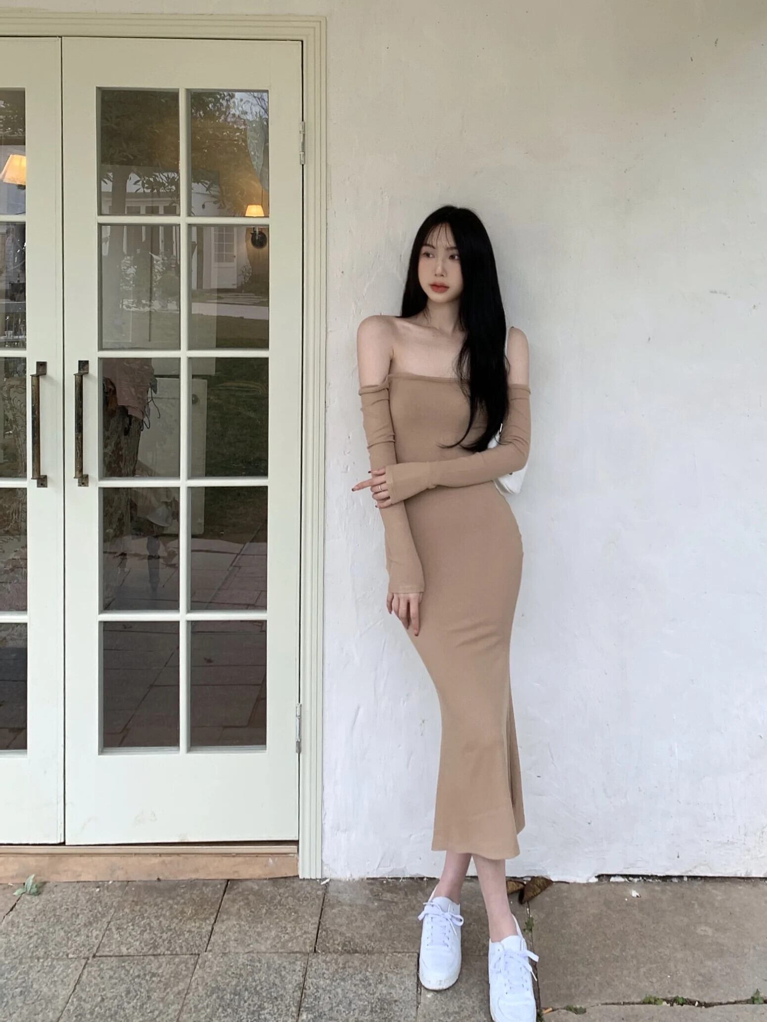 送料無料 アパレル セクシーなワンラインショルダードレス長袖女性 2023 スリムフィットドレス Laides BlackTrumpet ボディコンドレス ロング ブラック AE122232233626509860 | mihatudai(みはつばい)ネットショッピングならmihatudai